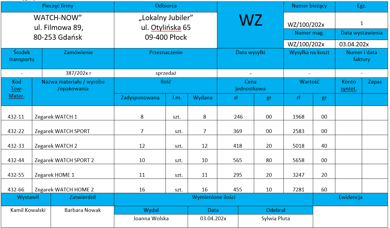 ZADANIE MRP – ILOŚCIOWO-WARTOŚCIOWE ZESTAWIENIE POTRZEB MATERIAŁOWYCH BRUTTO I NETTO