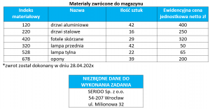 ZADANIE MRP – ILOŚCIOWO-WARTOŚCIOWE ZESTAWIENIE POTRZEB MATERIAŁOWYCH BRUTTO I NETTO