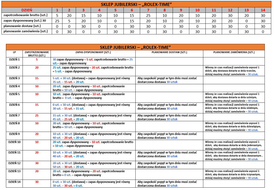 Zadania – gospodarka zapasami