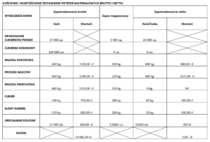 ZADANIE MRP – ILOŚCIOWO-WARTOŚCIOWE ZESTAWIENIE POTRZEB MATERIAŁOWYCH BRUTTO I NETTO