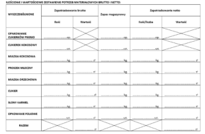 ZADANIE MRP – ILOŚCIOWO-WARTOŚCIOWE ZESTAWIENIE POTRZEB MATERIAŁOWYCH BRUTTO I NETTO